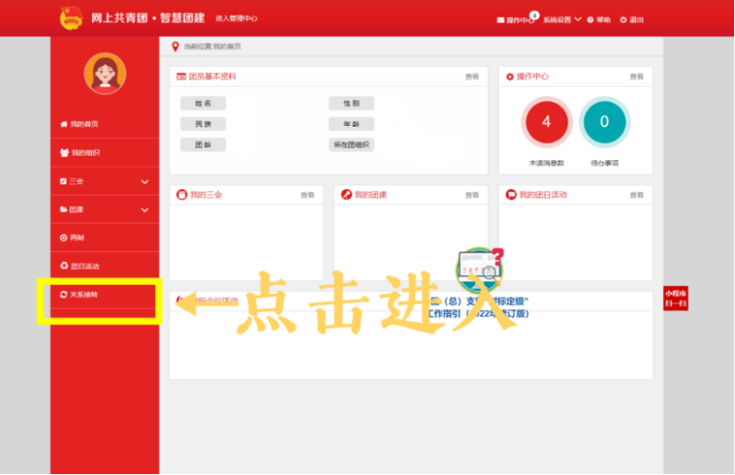 2.成功登录智慧团建后,进入个人中心,点击关系转接。