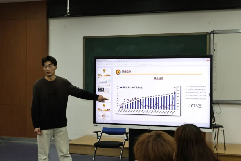 最后,李佳鸿同学为广大学子讲解PPT制作的底层逻辑,一步一步逐层递进,深入剖析了职业缘起等内容,为同学们制作PPT提供了最基本的支持。