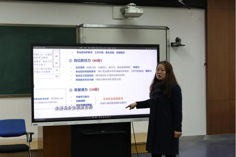 会议伊始,王娜老师为学子们明晰职业规划大赛中各赛道的方案,随后,为进一步助力同学们参与本次大赛,王娜老师就简历撰写方面为同学们指点迷津。