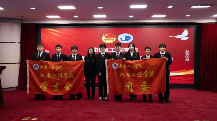 为强化学团组织队伍建设,凝聚青年工作合力,进一步激发学生组织的生机与活力,引导青年学生在服务集体、成长实践中勇担使命,机电工程学院于2025年12月5日在第七教学楼十三楼报告厅成功举办2025届学团组织工作人员换届大会。出席本次会议的有机电工程学院党委副书记王娜,团委书记强嘉楠,学院专职辅导员于洪雨、张伟俭、邱天、李云峰,校学生会执行主席沈帝舟,校团委学生组织副书记赵伍祥。机电学院2024届学团组织主席团、书记团和2025届学团组织全体工作人员参与本次会议。本次大会由2025届团委学生组织副书记王睿哲主持。