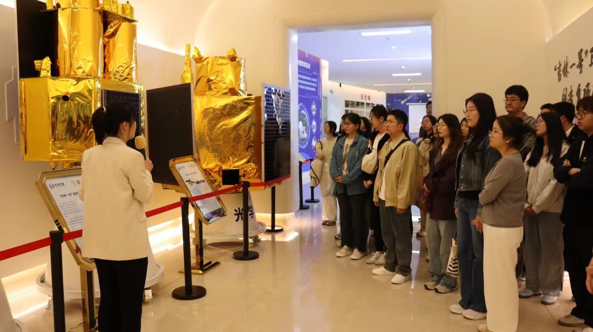 步入展厅,在讲解员的细致引导下,师生们依次驻足于“吉林一号”卫星模型、航天影像展板与技术成果展示区前,他们认真聆听航天事业的奋斗历程,深刻了解我国商业航天与“吉林一号”的发展突破。